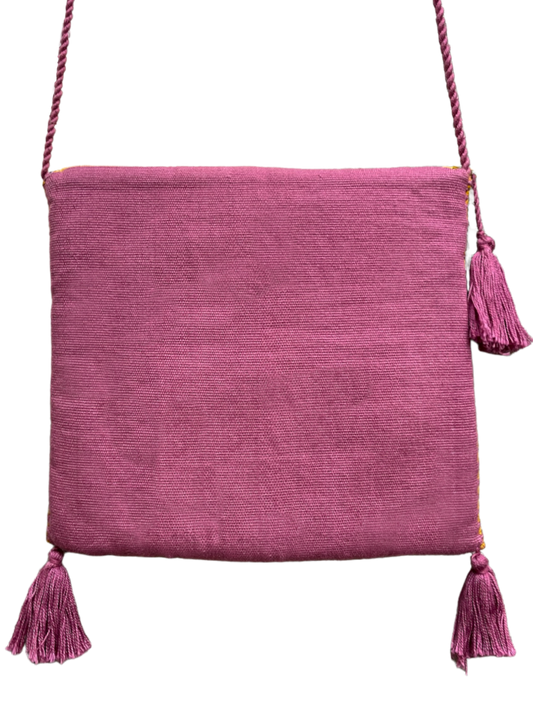 Pochette Tzotzil rembourrée, ocre et violette, 19cm x 16,5cm