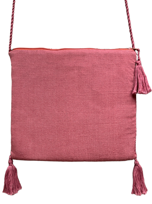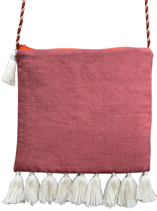 Pochette Tzotzil rembourrée, rose et ocre, 19cm x 16,5cm