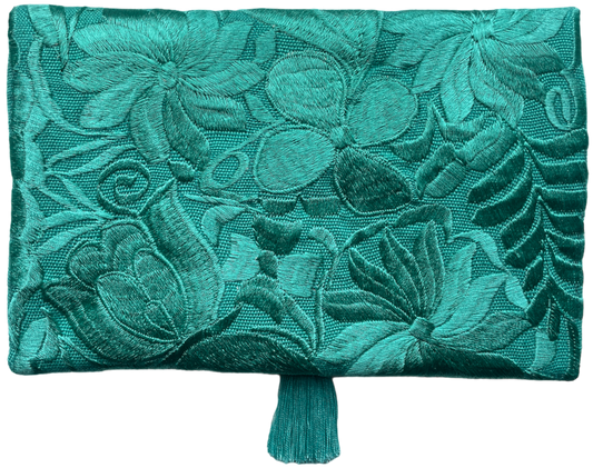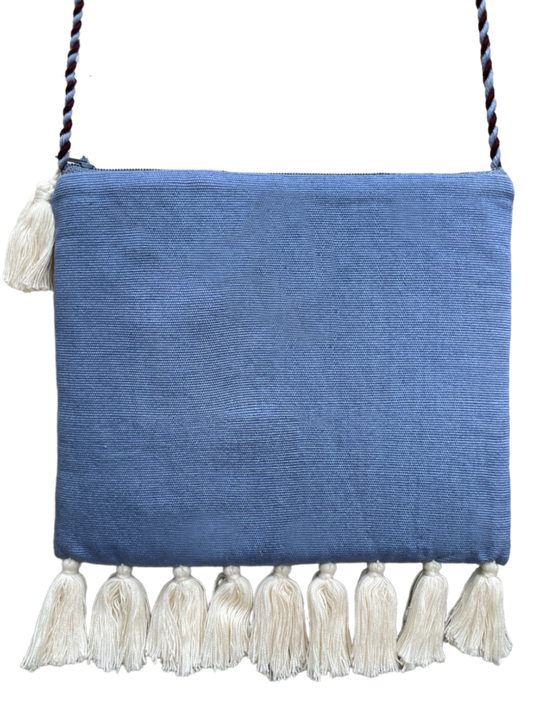 Pochette Tzotzil, Bleue et mutlicolore, 20cm x 12cm