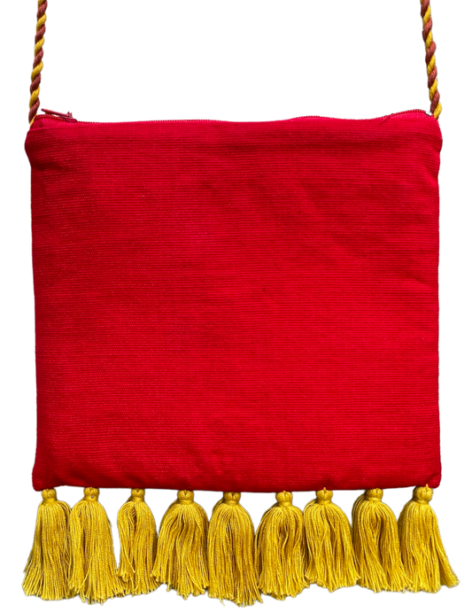 Pochette Tzotzil rembourrée, rouge et jaune, 19cm x 16,5cm