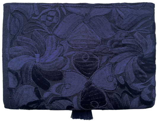 Pochette Tzotzil rembourrée, bleue marine et beige, 19cm x 16,5cm