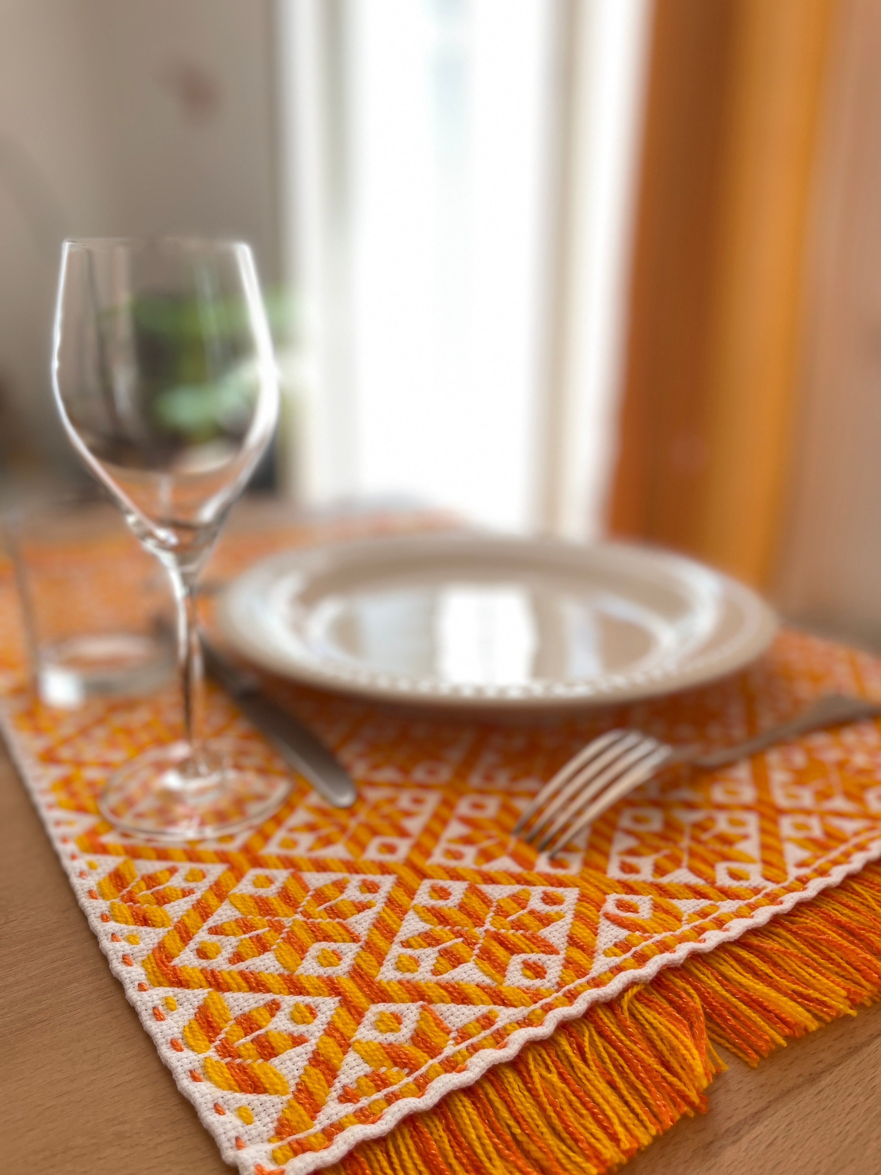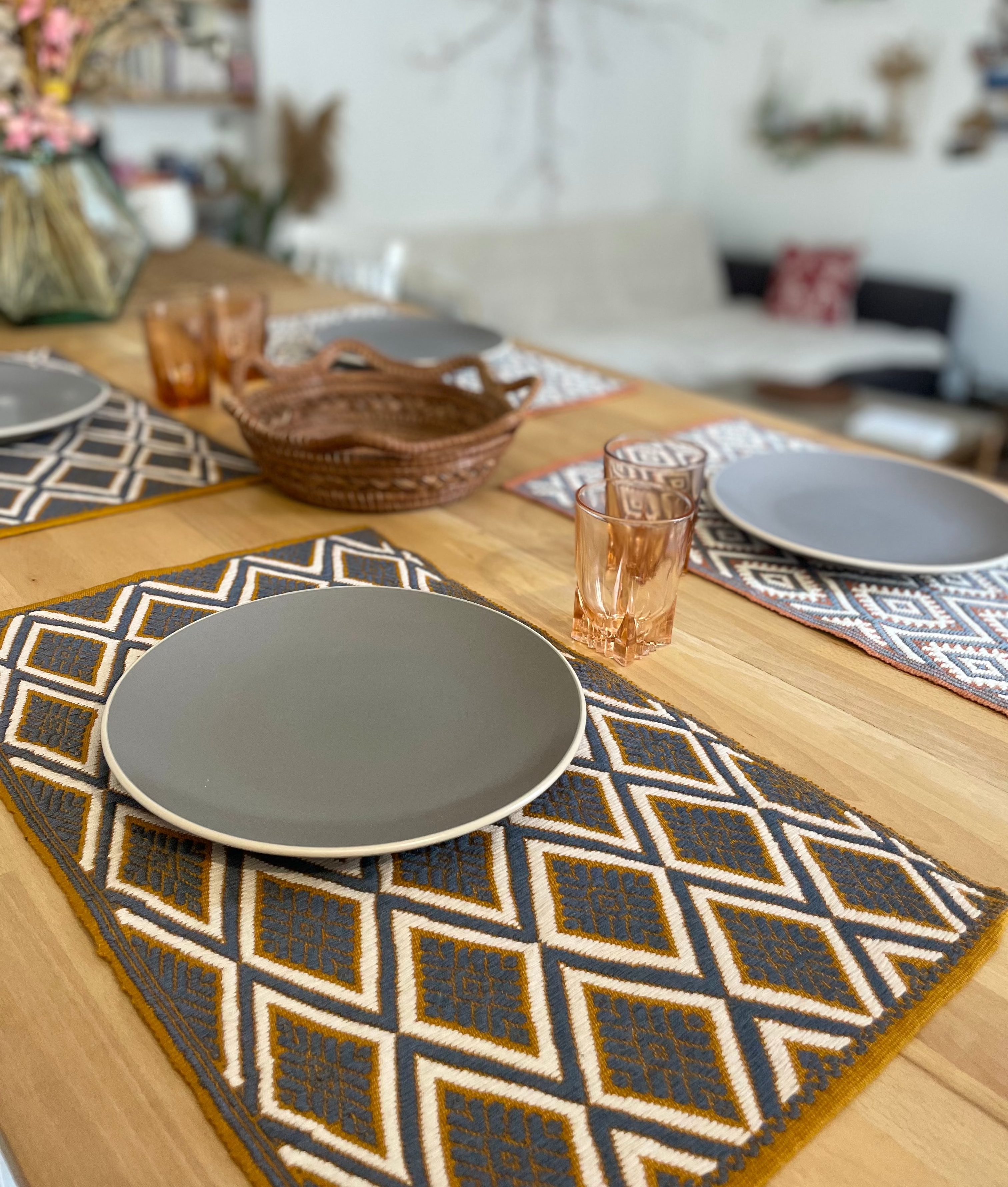 Chaque pièce est une œuvre textile unique, apportant de la couleur sur votre table.