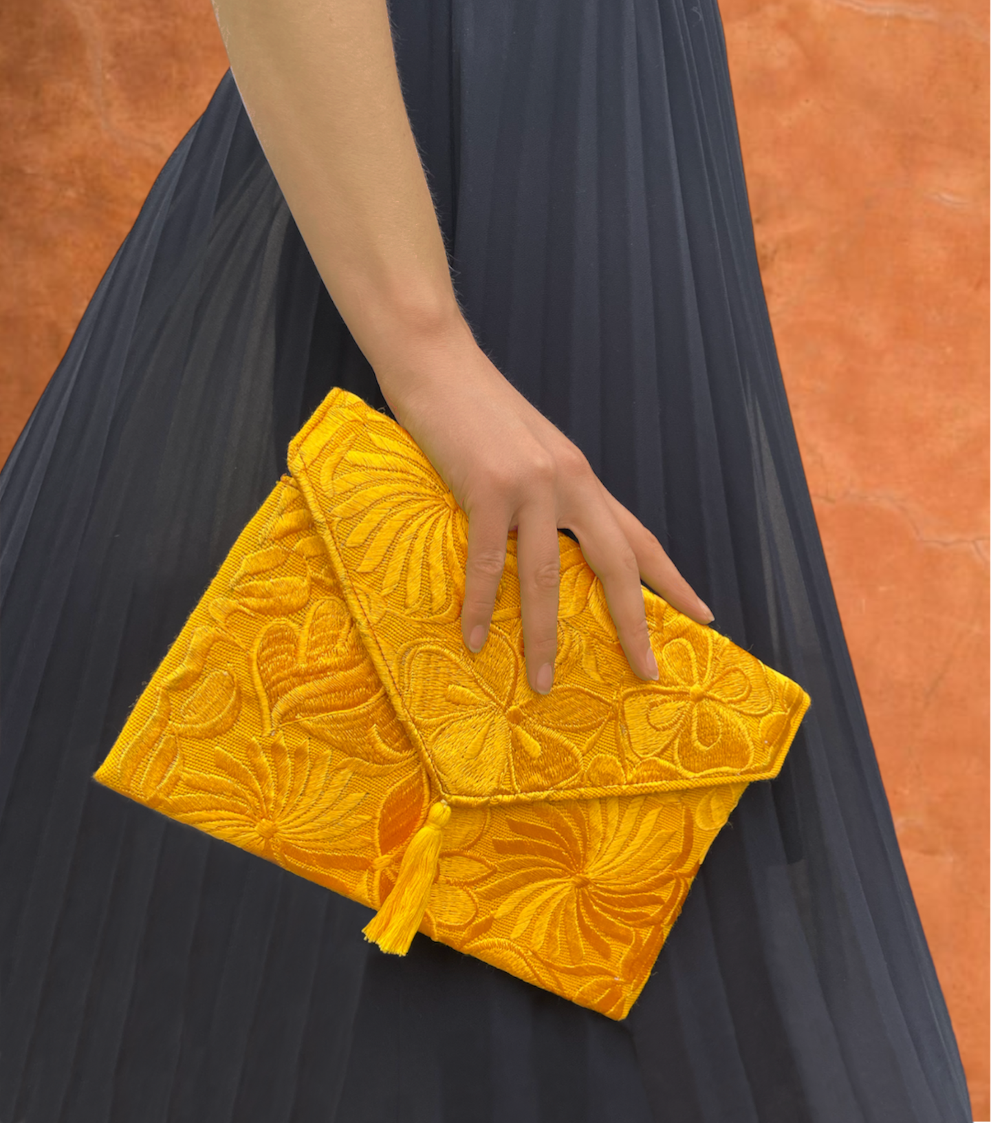 Embroidered floral clutch, yellow